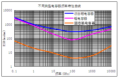 圖1 固態(tài)鋁電容與其他類型電容的頻率特性比較